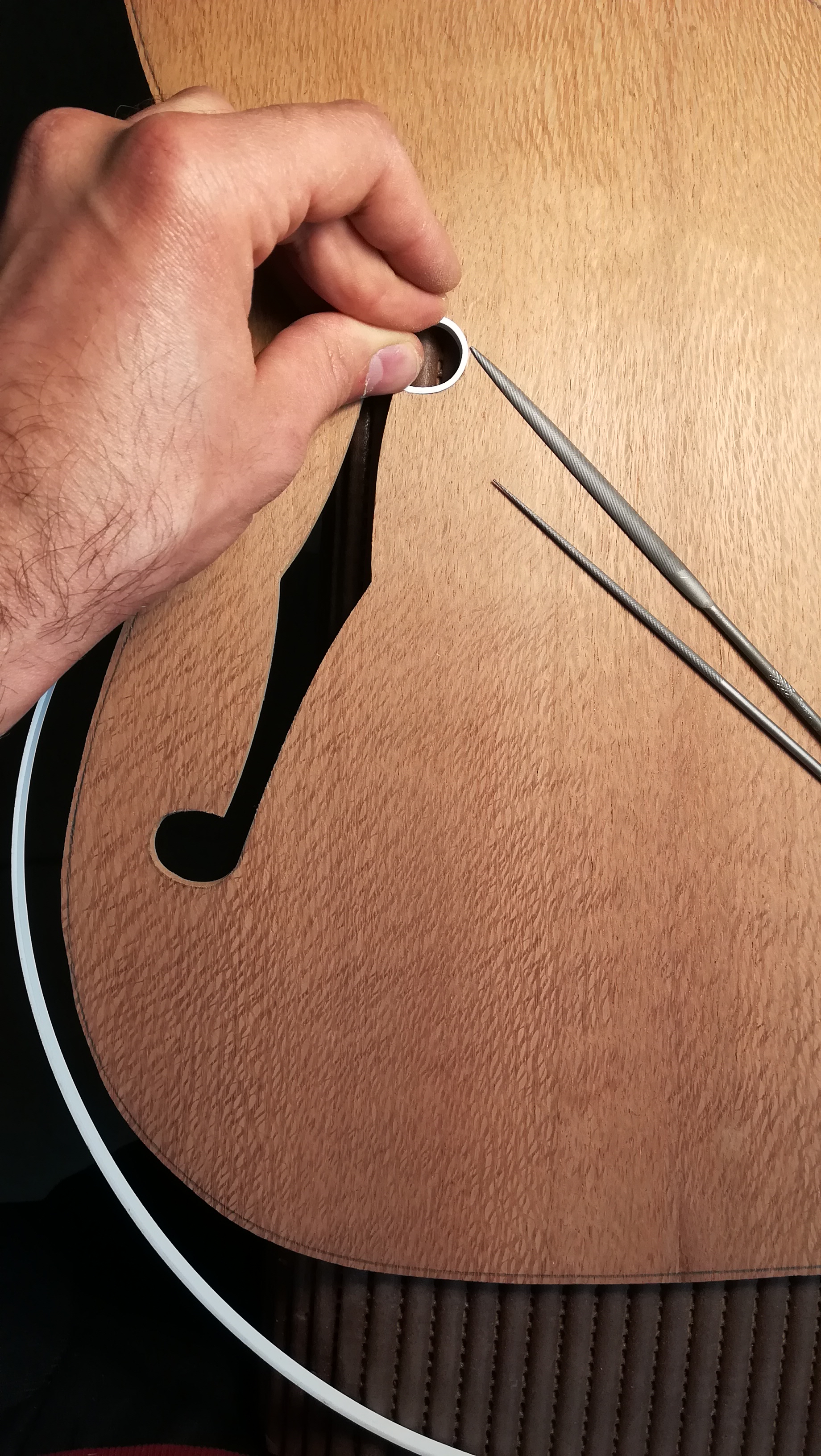 In electric lutherie I really appreciate the simplicity, this is why one of my favorite models is a reproduction of the Telecaster Thinline. The body has lateral tonal chambers that leave space for a solid core. Pickups, as well as all the hardware and woods used, are chosen following the customer’s request.